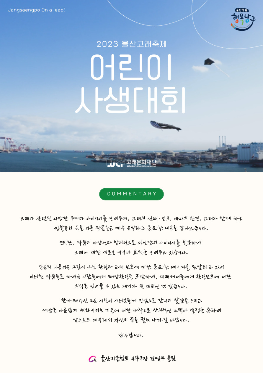 입상을 축하드리며, 2023 울산고래축제 어린이 사생대회 최종 결과를