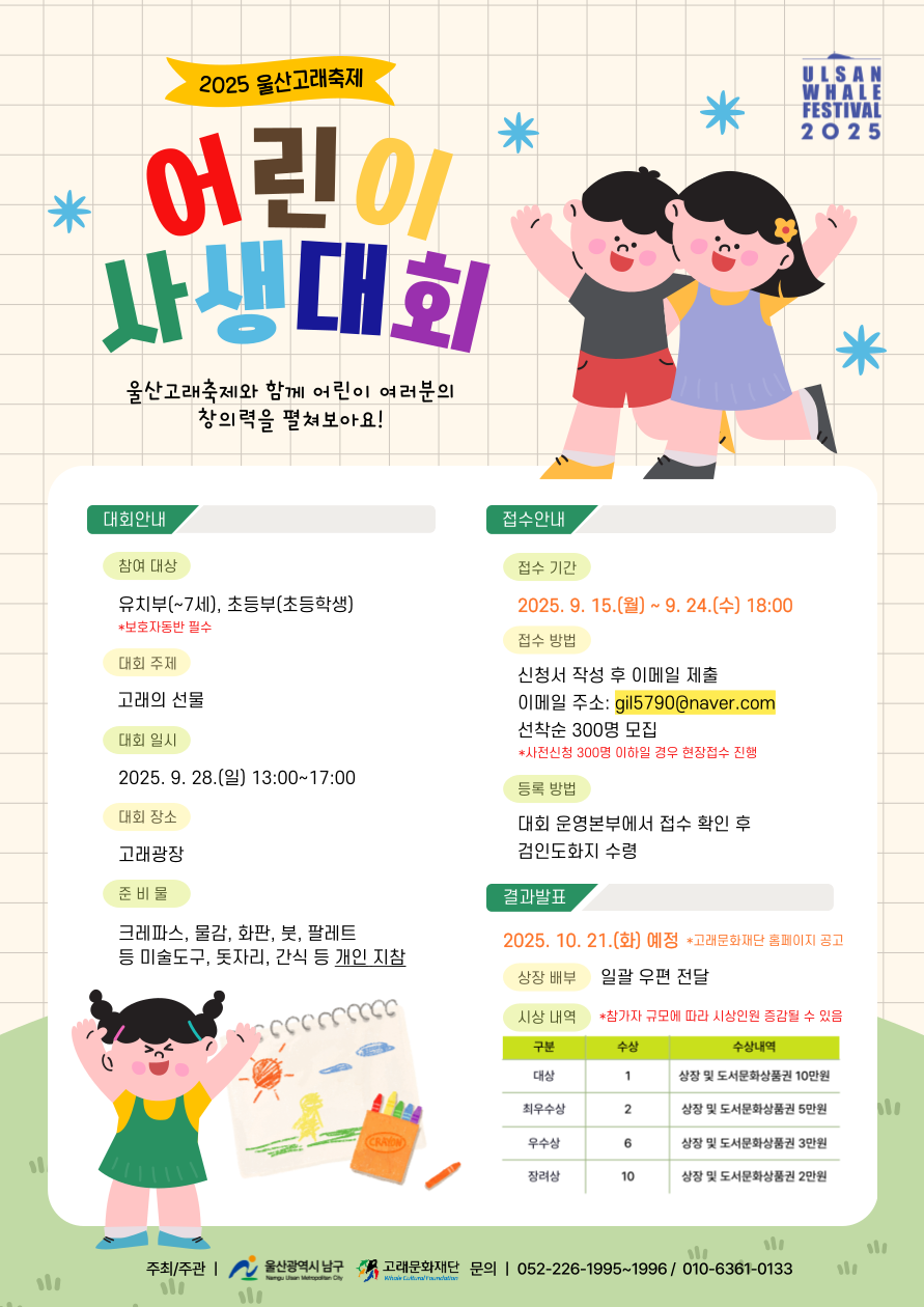 - 2025 울산고래축제 어린이 사생대회 참가자 모집